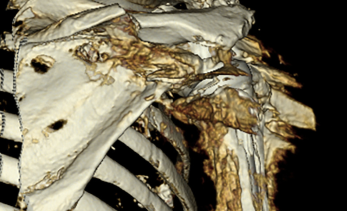 (1) Acromial and scapular spine stress fractures are clinically important complications of reverse total shoulder arthroplasty (RSA), occuring in 3-11% of cases and often resulting in poor functional outcomes such as persistent pain and limited active motion.