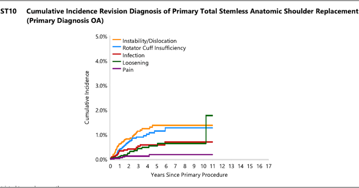 Let’s first look at the stemless data which can be compared to those from my prior post on conventional total shoulders from the 2024 Australian Joint Replacement Registry