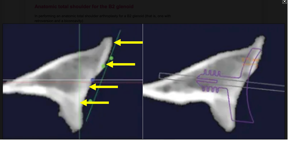 CT based preoperative planning is commonly used prior to anatomic arthroplasty to evaluate glenoid version and plan its management. Because of the Projected Lifetime Cancer Risks From Current Computed Tomography Imaging and Computed Tomography for Preoperative Shoulder Arthroplasty Planning: Lifetime Malignancy Risk, it is worth asking whether CT scans are necessary for arthroplasty planning in routine cases (see CT-free arthroplasty planning).