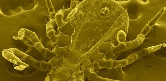 A closeup of a tick’s mouth parts under an electron microscope shows the barbs that allow it to hang on after it penetrates skin.
