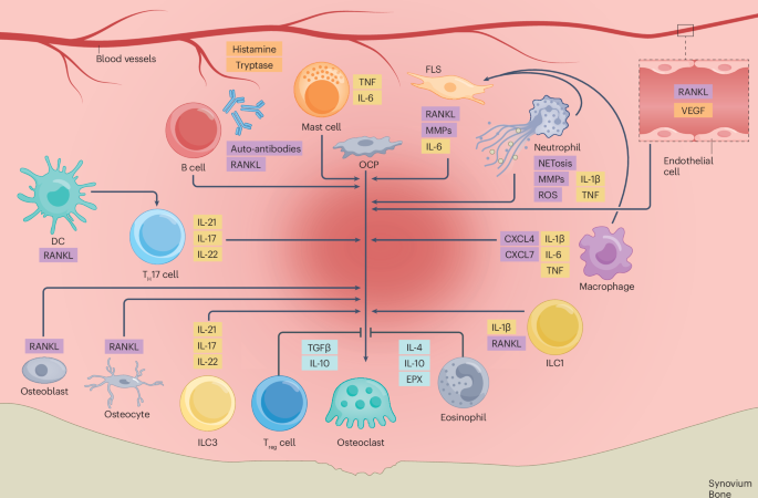 Danks, L. et al. RANKL expressed on synovial fibroblasts is primarily responsible for bone erosions during joint inflammation. Ann. Rheum. Dis. 75, 1187 (2016). This article shows that fibroblast-like synoviocytes are important contributors to inflammatory bone loss by producing RANKL.