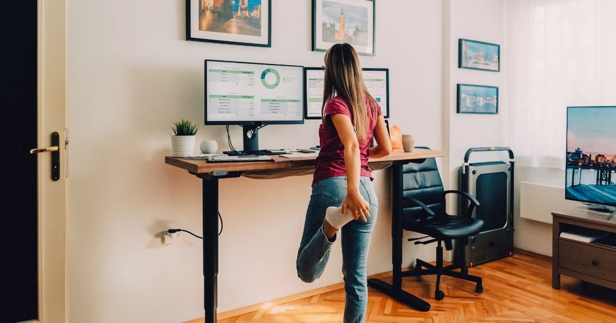 It’s important to note that standing all day isn’t necessarily better than sitting all day; it’s the balance between the two that matters. Switching between sitting and standing every 30 to 60 minutes may help reduce fatigue and muscle stiffness. If you’re using a standing desk, pay attention to how you’re standing. Locking your knees or leaning to one side over time can place extra pressure on your back or hips.