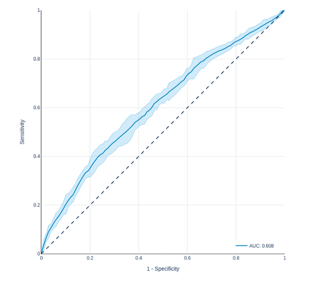 The machine learning model achieved an AUC-ROC of 0.61 (the value for random change would be 0.5).